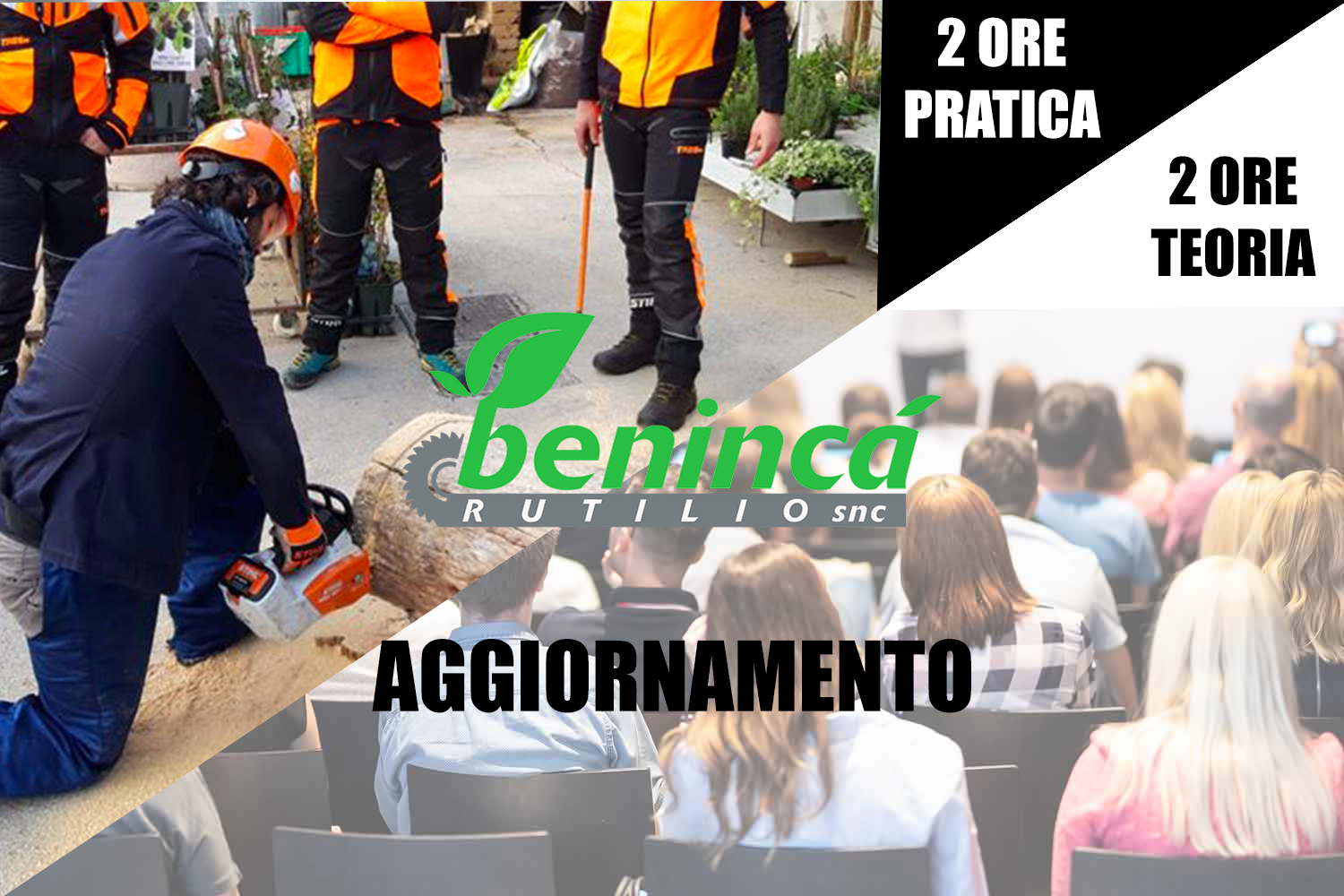 CORSO DI AGGIORNAMENTO DI 4 ORE PER IL RINNOVO DEL CORSO BASE PER MOTOSEGA (DA RINNOVARE OGNI 5 ANNI) COSI' COMPOSTO: -2 ORE DI TEORIA